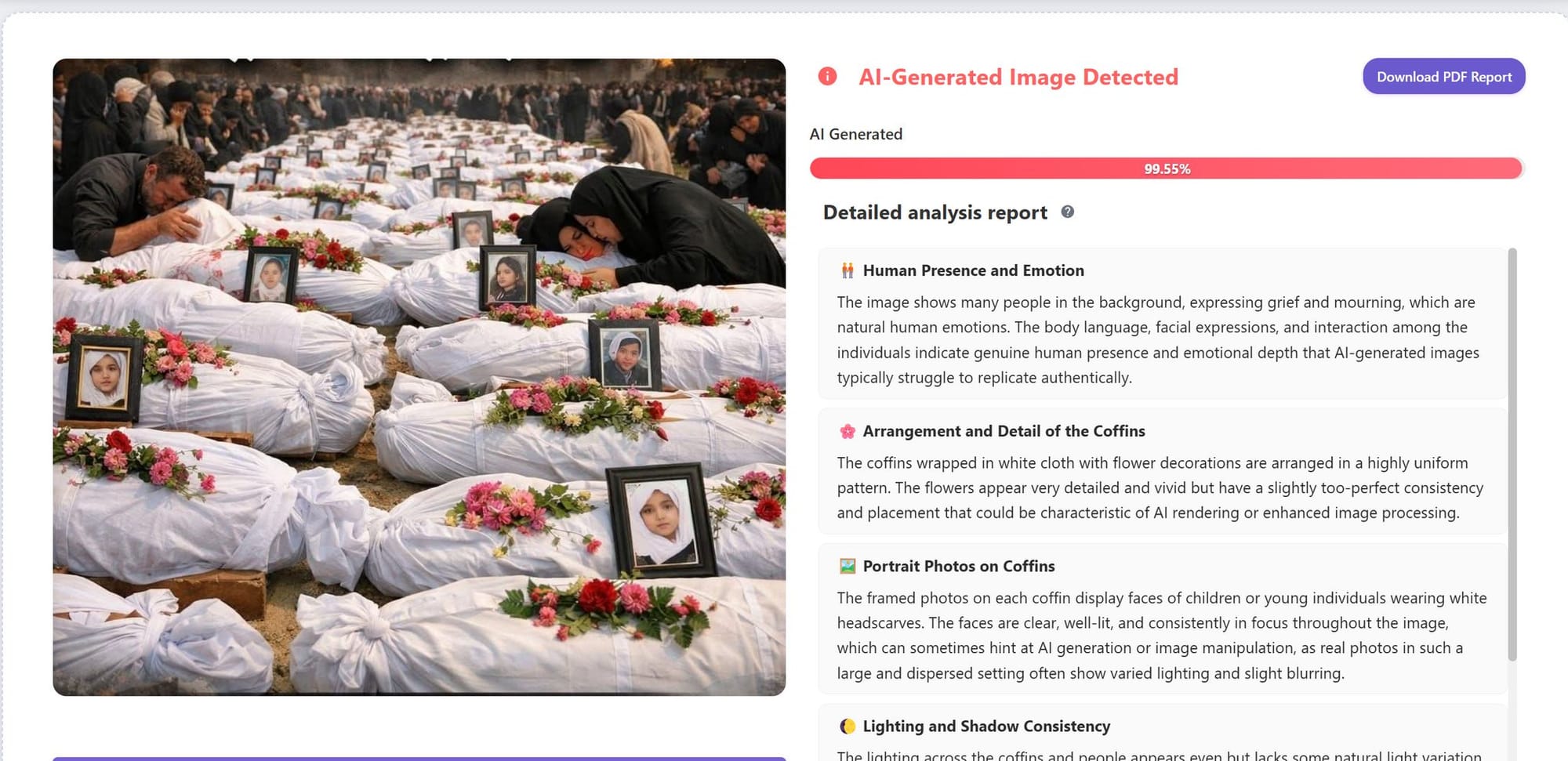 L’immagine in questione, analizzata da diversi strumenti di rilevazione forense digitale, presenta tutti i tratti distintivi di una generazione sintetica. La perfezione innaturale dei fiori, l’uniformità sospetta dei volti nelle fotografie e le tipiche anomalie nelle estremità degli arti (mani e dita) indicano una probabilità di origine IA superiore al 97%. Non si tratta di una svista isolata, ma di un tassello in una più ampia strategia di disinformazione coordinata da canali vicini al regime di Teheran, volta a demonizzare Israele attraverso contenuti emotivi privi di riscontro nella realtà dei fatti.